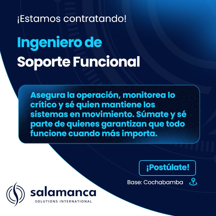 - Mínimo 2 años en soporte funcional de sistemas o monitoreo de operaciones.
